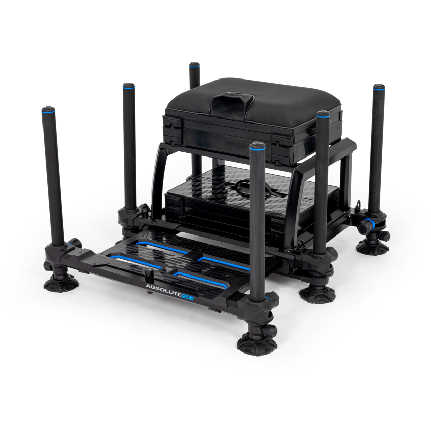 A major step forward comes with the revolutionary new drawer storage system, allowing each drawer to open fully for effortless access to every item. Like all models in the Absolute 5G range, the Station includes a single-sided footplate locking plunger, giving anglers even quicker access when adjusting or removing the footplate. Beneath the frame, a mesh stacker plate adds breathable storage space for additional modular units or accessories.