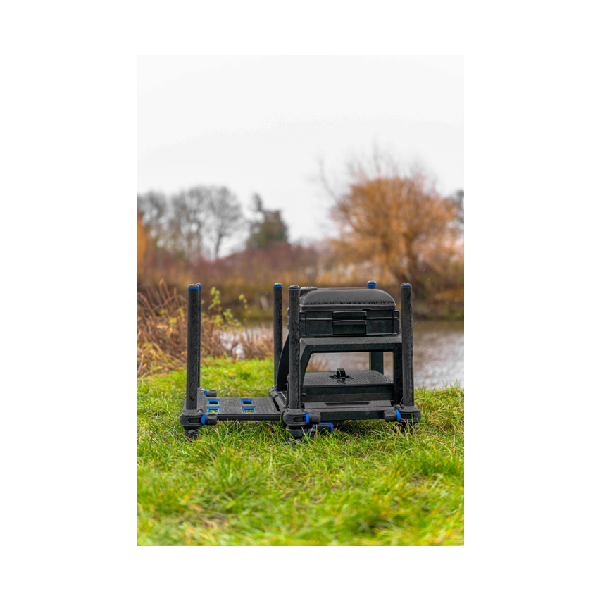At the heart of the design is an ultra-lightweight frame that offers exceptional strength without unnecessary bulk. Six 36mm telescopic legs provide an incredibly stable and adaptable platform, complete with new swivelling leg clamping knuckles for quick, precise positioning on any terrain. The height-adjustable frame and removable sliding footplate allow anglers to fine-tune their setup with ease, ensuring perfect balance and comfort no matter the conditions.