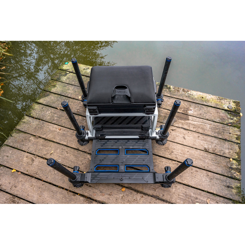 At the heart of the design is an ultra-lightweight frame that offers exceptional strength without unnecessary bulk. Six 36mm telescopic legs provide an incredibly stable and adaptable platform, complete with new swivelling leg clamping knuckles for quick, precise positioning on any terrain. The height-adjustable frame and removable sliding footplate allow anglers to fine-tune their setup with ease, ensuring perfect balance and comfort no matter the conditions.