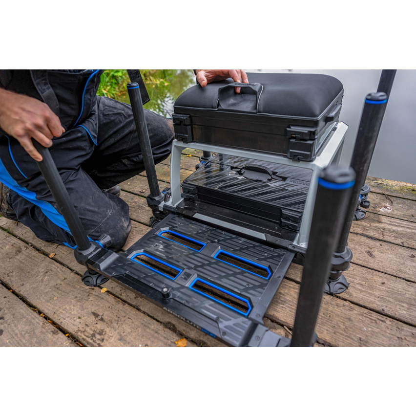A major step forward comes with the revolutionary new drawer storage system, allowing each drawer to open fully for effortless access to every item. Like all models in the Absolute 5G range, the Station includes a single-sided footplate locking plunger, giving anglers even quicker access when adjusting or removing the footplate. Beneath the frame, a mesh stacker plate adds breathable storage space for additional modular units or accessories.