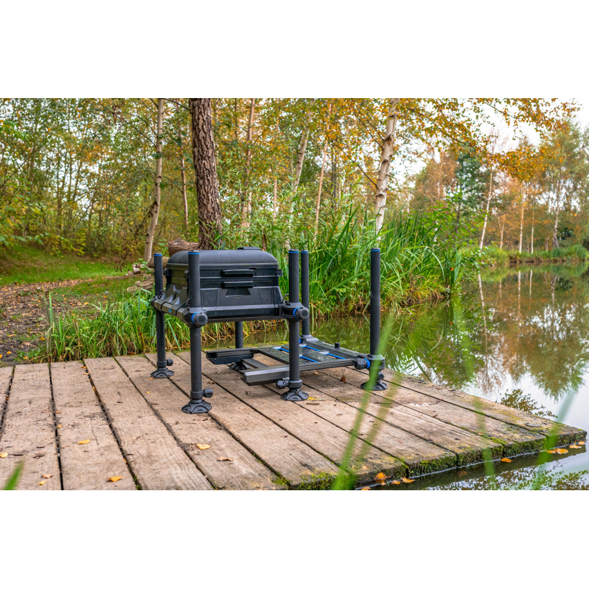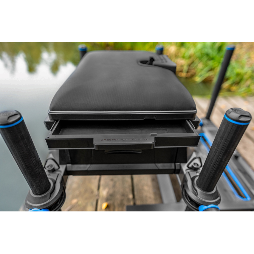 The H-frame structure also incorporates a deep central storage drawer, forming the main body of the seatbox. This provides generous, easy-access space for essential tackle, making it simple to organise and reach important items quickly.