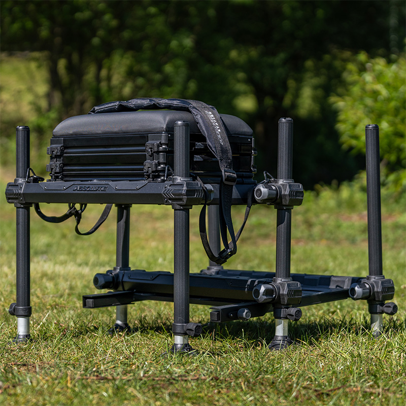 The Preston Innovations Absolute Compact offers a lightweight fully customisable alternative to the larger heavier Absolute Station. Built using a strong robust H frame design, the Compact offers the angler the chance to add and subtract units as they see fit. Despite the compact design, this seatbox is incredibly stable thanks to the 36mm telescopic legs and secure clamping knuckles, and comes supplied with a deep 75mm base unit, deep side unit and deluxe padded seat with shallow draw.