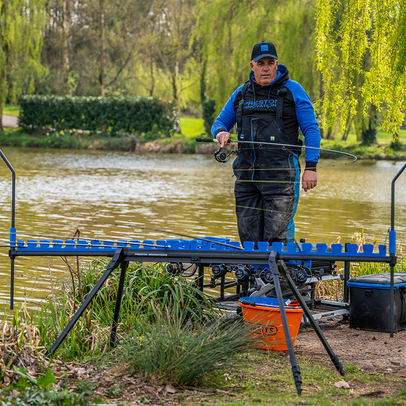 The Preston Innovations Inception Pro Roost Distance Stick Combo is designed to accommodate up to 26 rods or top kits with the added advantage of in-built distance sticks. The use of the sticks allows the angler to accurately measure their distance without having to leave their seatbox, it’s also ideal when the terrain makes using traditional distance sticks impossible.